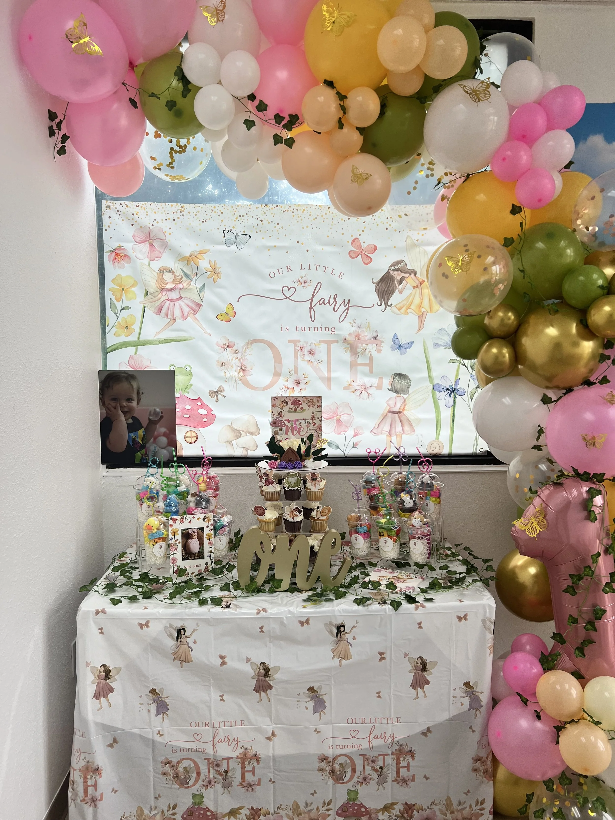 - Themed Backdrop, decorations including table decor plus number balloon, balloon garland.